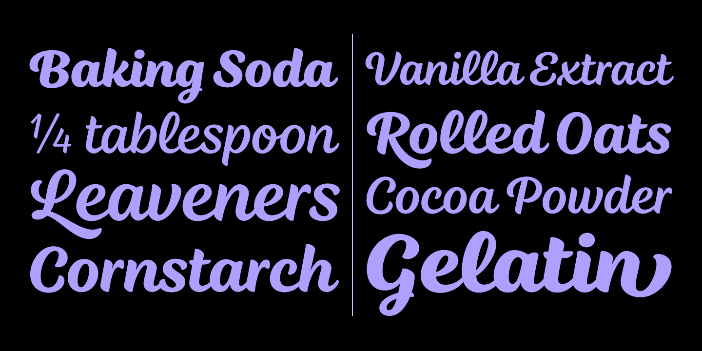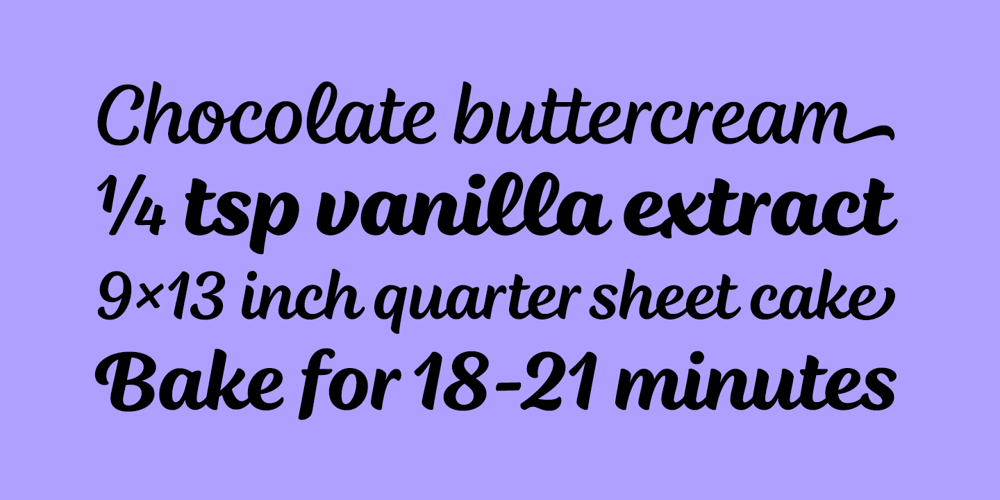 You can also buy Vadelma as Variable Font and adjust the weight of Vadelma smoothly between Light and Bold weights. Notice that you need design software that supports Variable Fonts.
